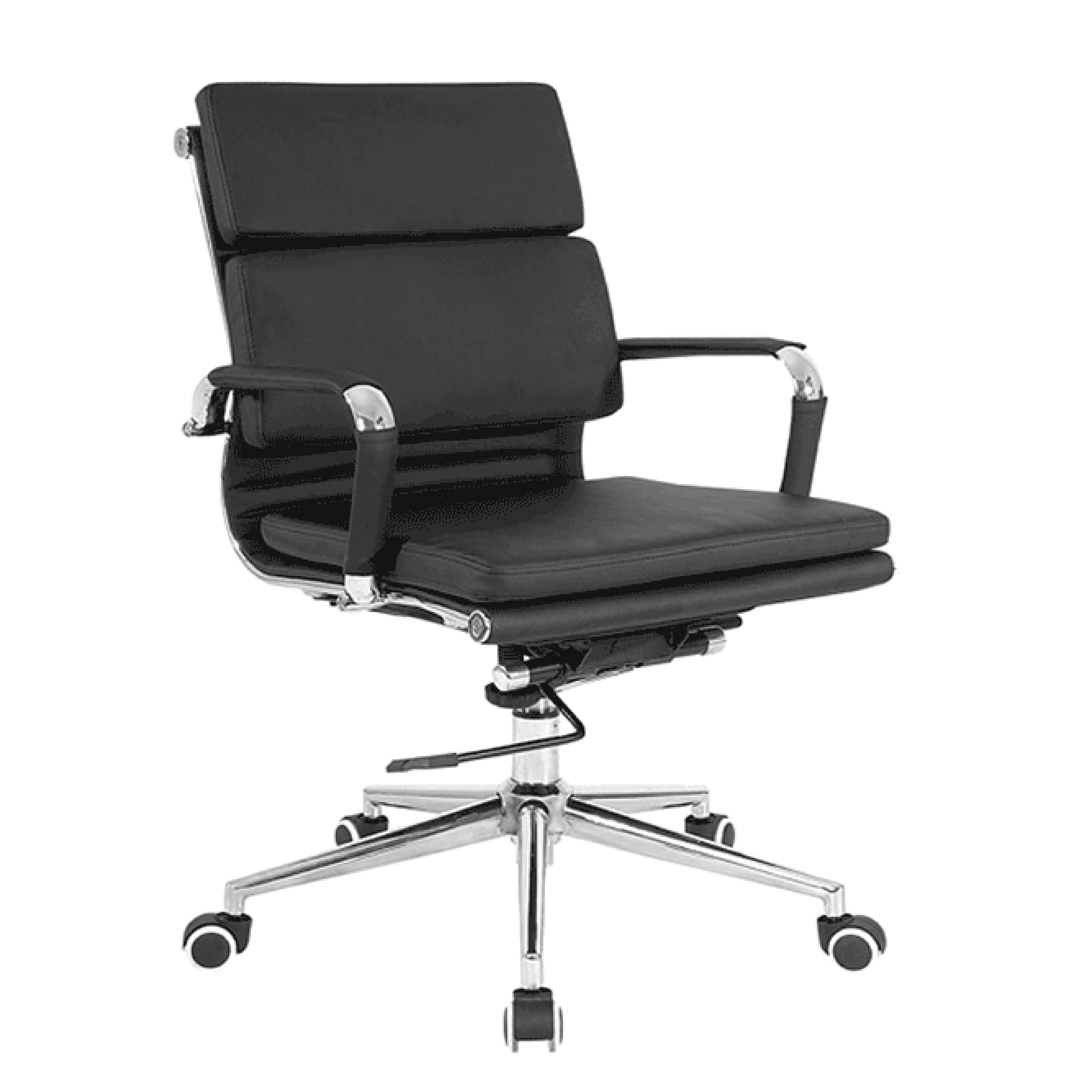 Addequar ofrece una silla con :Brazos fijos acolchados Tapizado en cuero ecologico Asiento y espaldar en espuma de alta densidad tapizado Ajuste en altura Base de 5 puntas cromada