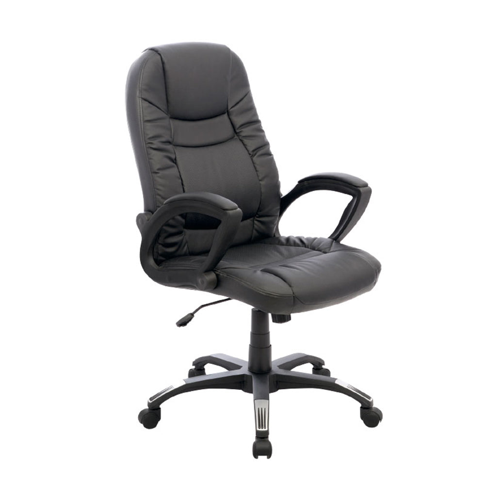 Addequar ofrece Silla tapizada en cuero sintético. Espalda Alta, Brazos en polipropileno, acolchados. Espaldar ergonómico, ajustable en Angulo en una posición de bloqueo. Basculante Base con diseño de 5 puntas en polipropileno. Silla giratoria con Ergonomía Básica. Brazos fijos,