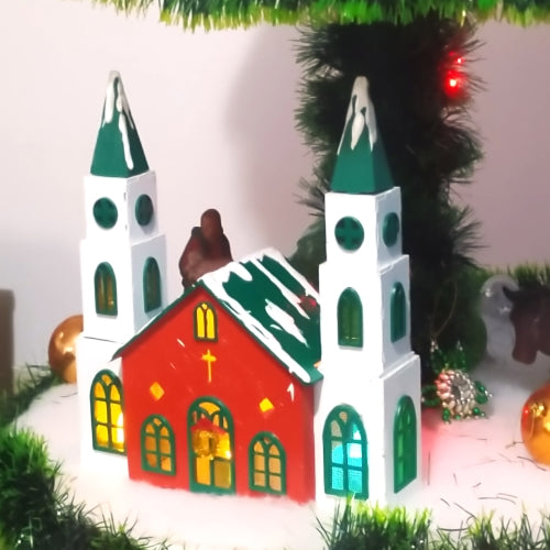 Iglesia fabricada en MDF pintada y lacada manualmente.