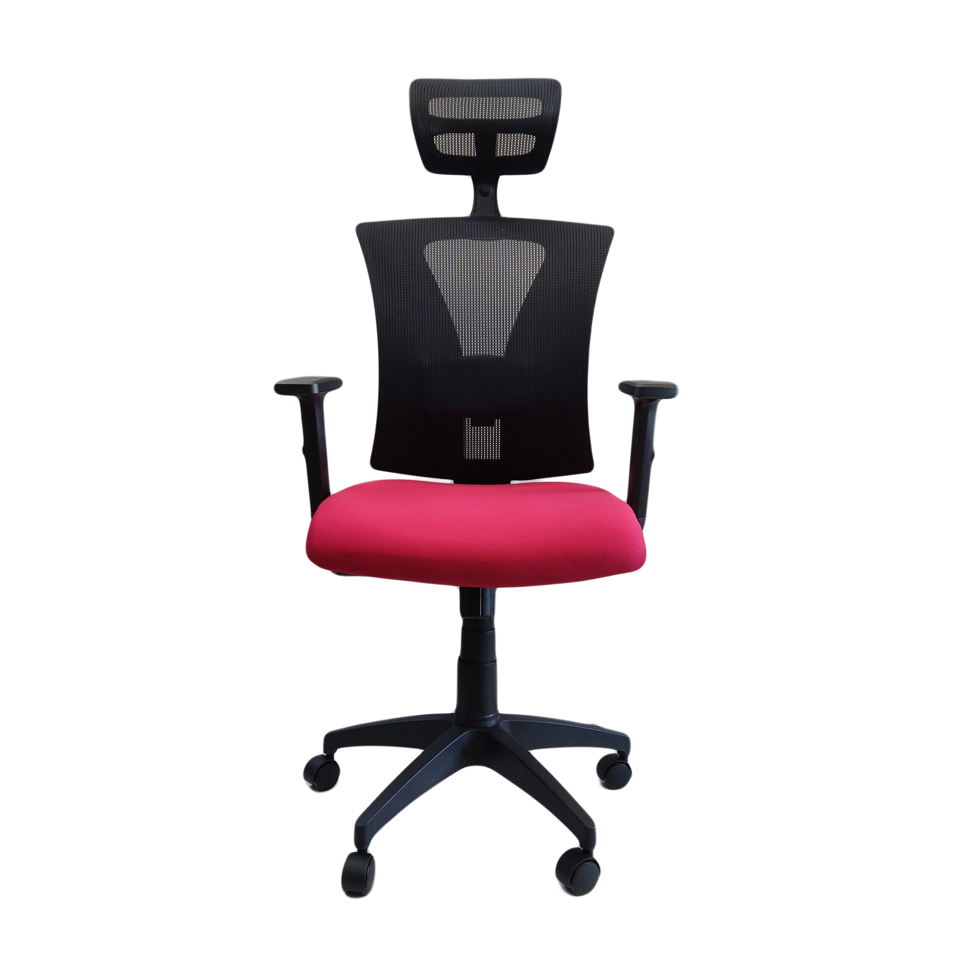 Silla ejecutiva ergonómica con espalda en marco polipropileno de alto impacto con malla traslucida. Apoyo lumbar graduable en altura y profundidad tapizado color NEGRO. Cabecero graduable en altura e inclinación tapizado en malla.