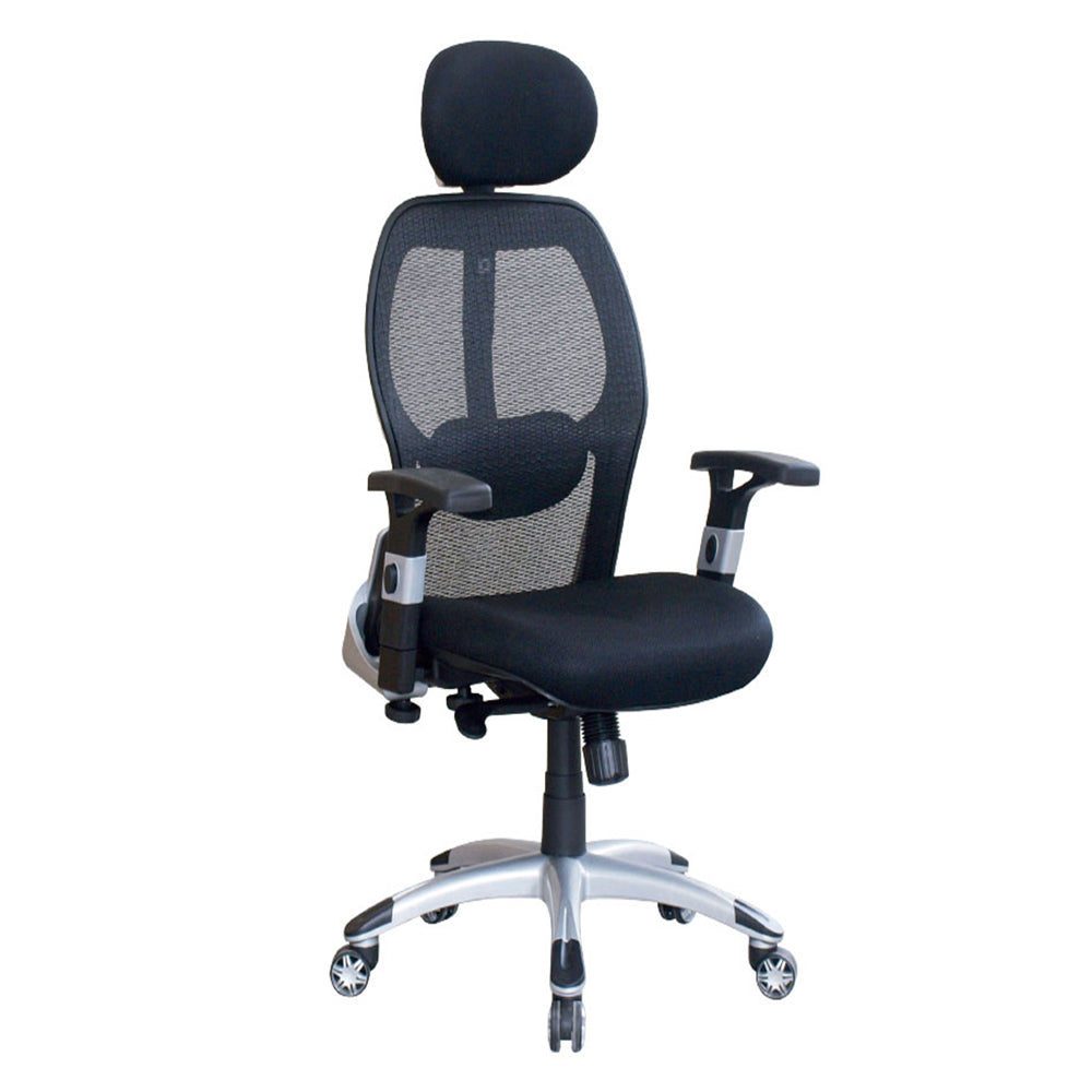Addequar ofrece una silla con :Ruedas en goma piso duro.Base de 5 puntas, Pintada de Gris.Elevación Neumática.Basculante Mecanismo Avanzado, 4 Bloqueos Brazos Ajustables Verticalmente.Apoyo Lumbar, ajustable en Vertical y Profundidad.Cabeceros Ajustable en Altura y Basculante.Tapizada en Malla Antitranspirante color Negra.